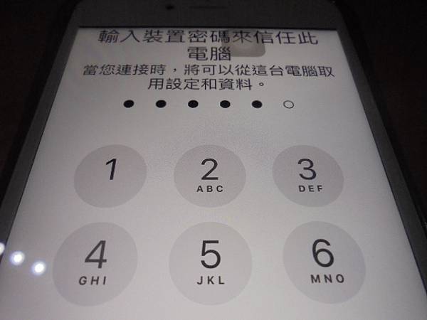 Apple蘋果iPhone 6s Plus~64GB智慧型手機被家人拿榔頭敲壞螢幕→導致手機無法觸控~已經更換新螢幕總成→要救回內建記憶體中的App資料~輸入裝置密碼來信任此電腦→新北市板橋區-鄭先生【手機螢幕白色數字鍵黑色】