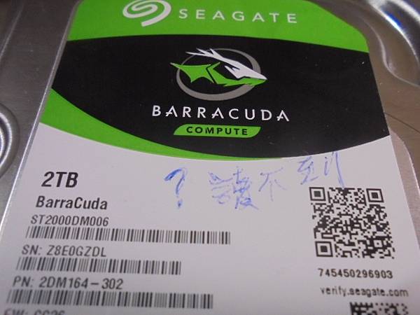 Seagate希捷3.5吋2TB→組裝桌上型電腦使用硬碟~孩子翻倒開機使用中的電腦後斷電→再開機就讀不到硬碟~要救回硬碟裏重要的網拍檔案→打開原廠透明膠盒取出硬碟~新北市板橋區-顧先生【正面標籤貼紙為新梭魚Pro】