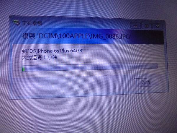 Apple蘋果iPhone 6s Plus~64GB智慧型手機被家人拿榔頭敲壞螢幕→導致手機無法觸控~已經更換新螢幕總成→要救回內建記憶體中的App資料~正在複製計算複製檔案所需的時間→新北市板橋區-鄭先生【似乎是檔案數量很多】