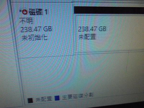 ACER宏碁SF314-51~筆記型電腦更新作業系統後→就進不去Windows 10~送原廠亦無法解決→要救回桌面的檔案資料~點選存放裝置磁碟管理→新北市汐止區-周小姐【磁碟1未初始化238.47GB】