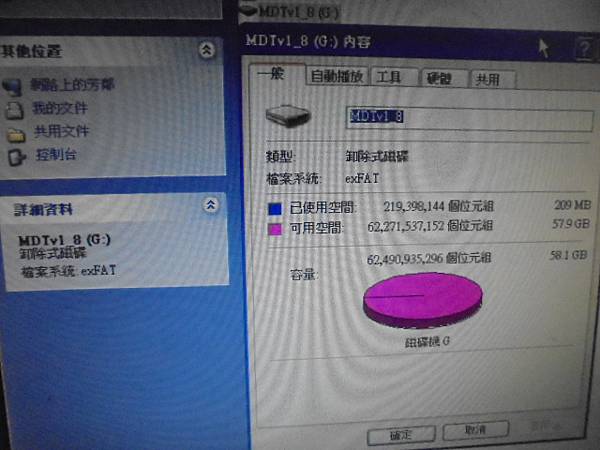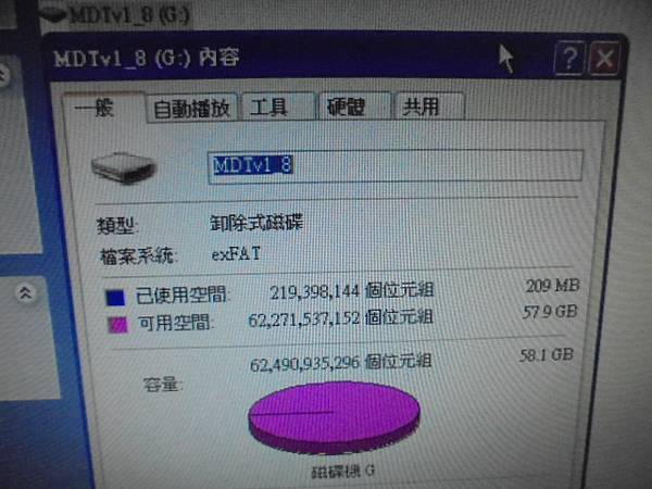 白牌-不知名品牌8GB~隨身碟插在電腦讀取時→出現修復磁碟錯誤訊息視窗就點了Yes後~所有檔案都消失不見→已救回重要的檔案資料~卸除式磁碟→新北市板橋區-劉小姐【已使用空間209MB可用空間57.9GB】