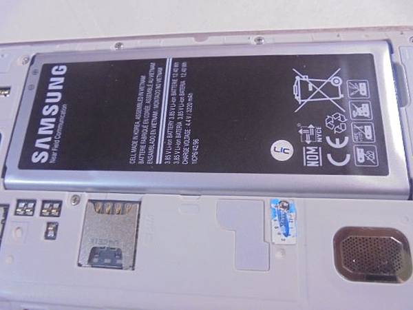 SAMSUNG三星Note 4→32GB智慧型手機使用時自動關機~插充電線不亮燈完全不能開機→送2家通訊行都說無法處理~已完修整隻手機保存檔案資料→將SAMSUNG三星原廠電池滑入扣緊~臺北市南港區-黃小姐【蓋回原廠背蓋】