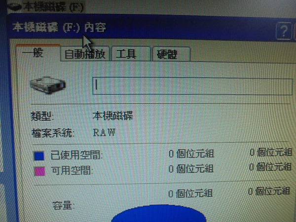 Seagate希捷3.5吋2TB→組裝桌上型電腦使用硬碟~孩子翻倒開機使用中的電腦後斷電→再開機就讀不到硬碟~要救回硬碟裏重要的網拍檔案→本機磁碟F:內容RAW~新北市板橋區-顧先生【已使用空間可用空間0個位元組】