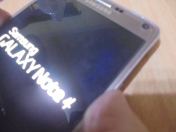SAMSUNG三星Note 4~32GB智慧型手機使用時自動關機→插充電線沒亮充電燈完全不能開機~SM-N910U→已救回內建記憶體的App資料檔案~螢幕左上方亮起藍燈→臺北市南港區-黃小姐【螢幕顯示SAMSUNG字樣】