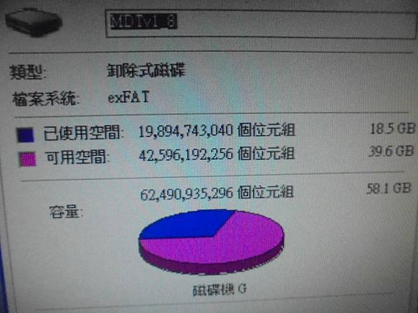白牌-不知名品牌8GB→隨身碟插在電腦讀取時~點進卸除式磁碟卻看不見先前儲存的檔案→所有檔案都消失不見~已救回重要的檔案資料→已使用空間18.5GB可用空間39.6GB~新北市板橋區-劉小姐【58.1GB】