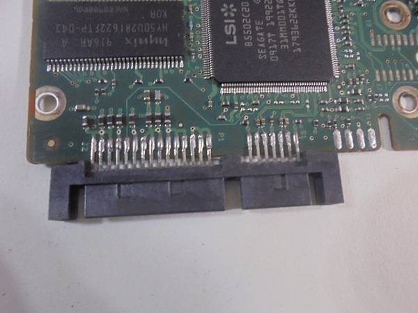 Seagate希捷500GB~3.5吋硬碟不知原因遭到惡意破壞→SATA接座的訊號7Pin電源15Pin損壞嚴重~接座如同被狗啃過般體無完膚→完工的Seagate硬碟電路板~臺東縣臺東市-陳先生【翻至背面置回硬碟本體】