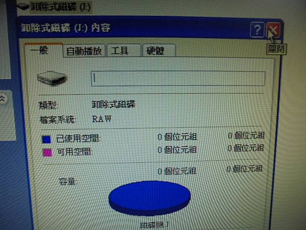Transcend創見SDHC 32GB~記憶卡插上電腦讀取為RAW→不知何故出現尚未格式化視窗~要救回學校作業的MOV影片檔案→卸除式磁碟J內容RAW~新北市中和區-謝小姐【已使用空間可用空間0個位元組】