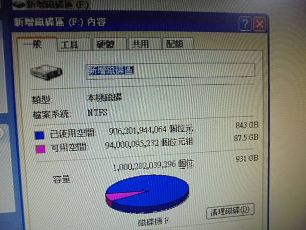 WD威騰1TB~3.5吋BLUE硬碟於組裝電腦使用→自行更換電腦零件時不慎摔到硬碟~折壞7Pin訊號端SATA接座→要救回硬碟中的重要檔案資料~找到新硬體磁碟機→新北市鶯歌區-邱先生【新增磁碟區F大小總計931GB】