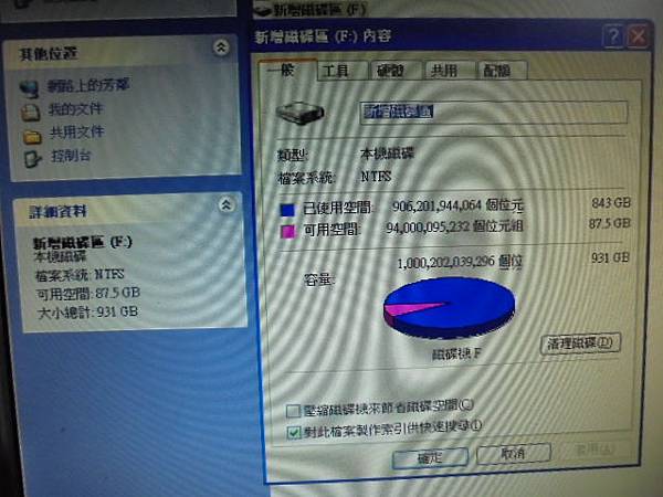 WD威騰1TB→3.5吋BLUE硬碟於組裝電腦使用~自行更換電腦零件時不慎摔到硬碟→折壞SATA接座7Pin訊號端~要救回硬碟中的重要檔案資料→新增磁碟區F:~新北市鶯歌區-邱先生【已使用空間843GB可用空間87.5GB】