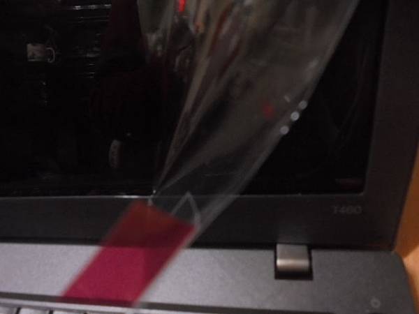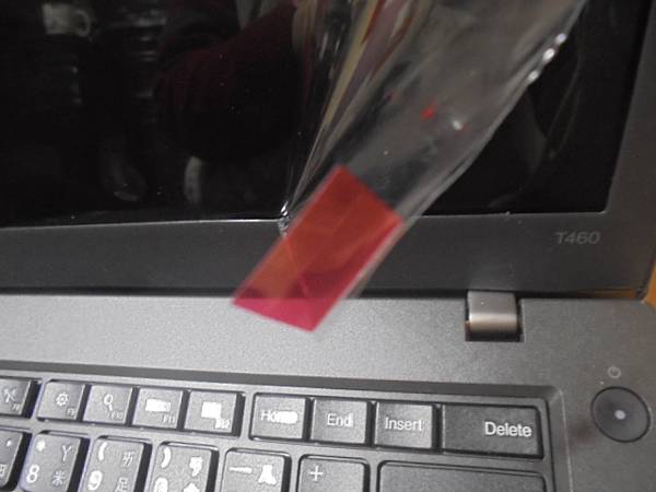 Lenovo聯想ThinkPad→T460筆記型電腦由書桌上掉落~導致液晶面板碎裂→外接螢幕可以正確顯示~已經換新螢幕繼續使用→手指撕開新液晶面板上的保護膠膜~臺北市桂林路-陳小姐【由下往上由左往右撕除】