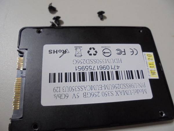 UMAX力捷S350→SSD硬碟256GB接在家人的組裝電腦~不慎折斷SATA塑膠片→導致完全無法使用固態硬碟~要救回家人儲存的檔案資料→取十字起子依序鬆開原廠4顆十字螺絲~臺北市文山區-余先生【背面為金屬底蓋】
