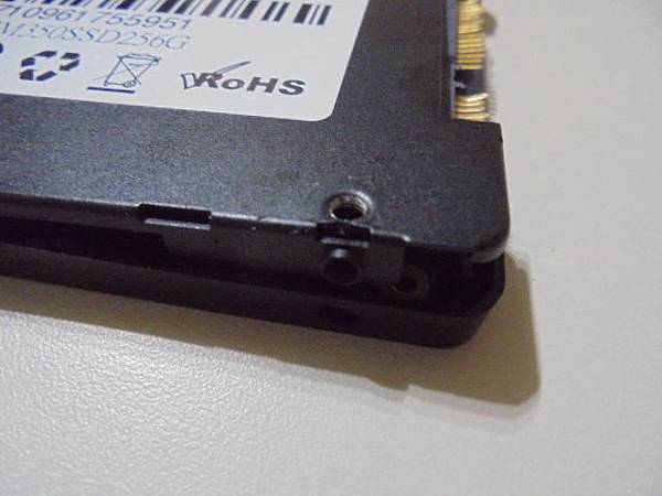 UMAX世成S350~256GB硬碟SSD接在家人的組裝電腦→SATA塑膠片不慎折斷~硬碟無法連接SATA接點→要救回家人儲存的重要檔案資料~金屬底蓋與塑膠上蓋做分離→臺北市文山區-余先生【慢慢劃開上蓋底蓋之間的卡楯】 UMAX力捷S350→SSD硬碟256GB接在家人的組裝電腦~不慎折斷SATA塑膠片→導致完全無法使用固態硬碟~要救回家人儲存的檔案資料→取十字起子依序鬆開原廠4顆十字螺絲~臺北市文山區-余先生【背面為金屬底蓋】