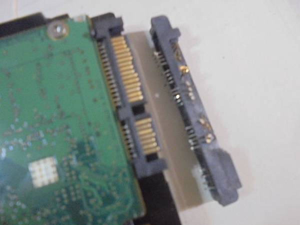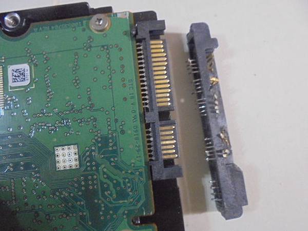 Seagate希捷500GB~3.5吋硬碟不知原因遭到惡意破壞→SATA接座的訊號7Pin電源15Pin損壞嚴重~接座如同被狗啃過般體無完膚→完工的Seagate硬碟電路板~臺東縣臺東市-陳先生【與損壞而拆下的接座】