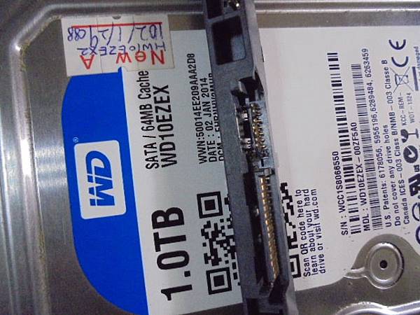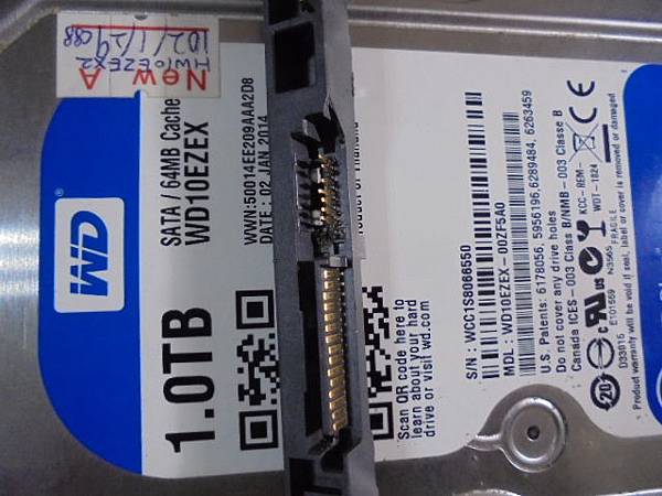 WD威騰1TB→3.5吋BLUE硬碟於組裝電腦使用~自行更換電腦零件時不慎摔到硬碟→折壞SATA接座7Pin訊號端~已救回硬碟中的重要檔案資料→WD10EZRX藍標硬碟~新北市鶯歌區-邱先生【出廠2014 JAN 02】