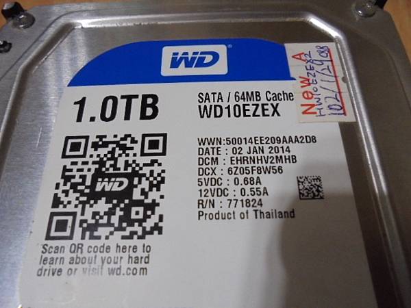 WD威騰500GB~3.5吋硬碟為組裝電腦當Server伺服器使用→忽然硬碟無法讀取~要救回鉅茂與凌越ERP進銷存資料庫檔案→連接電腦找到新硬體~新北市新莊區-陳先生【辨識硬碟品牌型號】