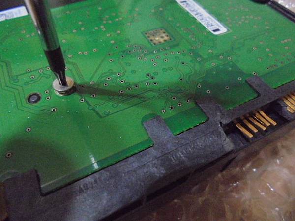 Seagate希捷1TB→3.5吋硬碟接於組裝電腦~SATA接座的訊號7Pin塑膠片→於拆拔中不慎折斷而無法讀取~要救回硬碟裏重要的檔案資料→以星型起子鬆開固定電路板的6顆螺絲~臺北市長春路-孫先生【原廠4長2短星型螺絲】