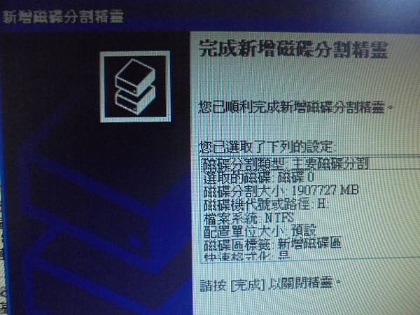 Seagate希捷3.5吋2TB~組裝桌上型電腦使用硬碟→孩子翻倒開機使用中的電腦後斷電~再開機就讀不到硬碟→光華商場報價30K救援費用~執行快速格式化P新增磁碟區→新北市板橋區-顧先生【完成新增磁碟分割精靈】 Seagate希捷3.5吋2TB→組裝桌上型電腦使用硬碟~孩子翻倒開機使用中的電腦後斷電→再開機就讀不到硬碟~要救回硬碟裏重要的網拍檔案→磁碟分割大小1907727MB~新北市板橋區-顧先生【指定下列磁碟機代號A】