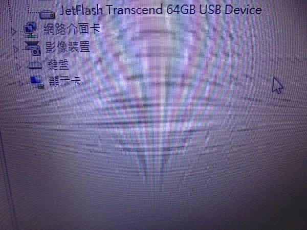 白牌-不知名品牌8GB~隨身碟插在電腦讀取時→出現修復磁碟錯誤訊息視窗就點了Yes後~所有檔案都消失不見→已救回重要的檔案資料~滑鼠點進磁碟機→新北市板橋區-劉小姐【JetFlash 64GB USB Device】 白牌-不知名品牌8GB→隨身碟插在電腦讀取時~點進卸除式磁碟卻看不見先前儲存的檔案→所有檔案瞬間消失不見~要救回重要的檔案資料→Mouse點進電腦管理[本機]~新北市板橋區-劉小姐【滑鼠續點裝置管理員】