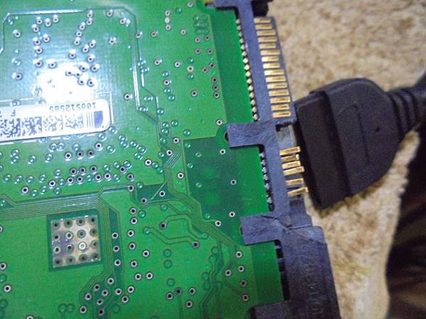 Seagate希捷1TB~3.5吋硬碟接於組裝電腦→SATA接座的訊號7Pin塑膠片~於拆拔中不慎折斷而無法讀取→要救回硬碟裏重要的檔案資料~再拔除連接於SATA電源接座上→臺北市長春路-孫先生【15Pin接點的電源線】