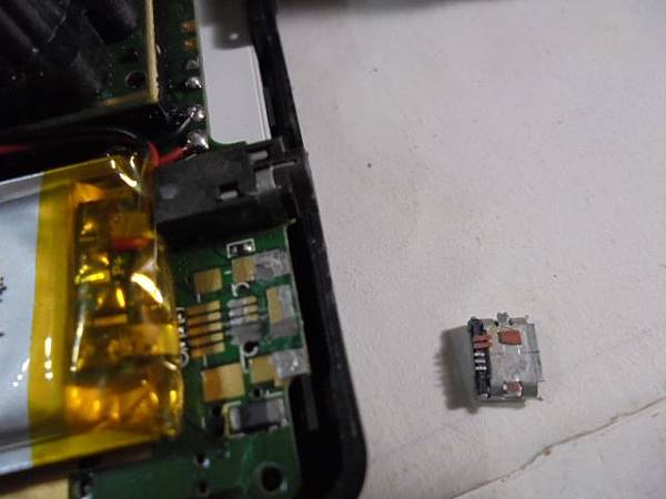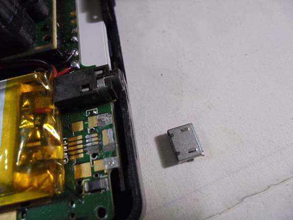 DOD大虹IS200W→行車紀錄器充電Micro USB接座~於插拔接線時扯落→自行拆解外殼後發現沒能力維修~要修好接座繼續做使用→將行車紀錄器主機板~臺東縣大武鄉-黃先生【由DOD原廠底殼的卡楯中挖出】
