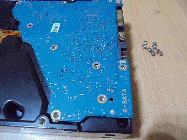 TOSHIBA東芝8TB~3.5吋企業及硬碟於組裝電腦使用→自行更換電腦零件時不慎摔到硬碟~折斷7Pin訊號接座塑膠片→想修好硬碟SATA接座繼續使用~翻至背面取十字起子鬆開固定硬碟電路板→新北市鶯歌區-邱先生【9顆十字螺絲】
