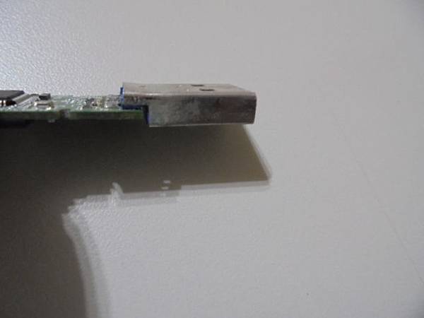 TDK東電化USB 3.0~32GB隨身碟插在桌上型電腦使用→不慎踢到後插回電腦讀取~出現USB裝置無法辨識→要修好隨身碟救出公司重要檔案資料~電路板側面看USB接頭→新北市板橋區-黃小姐【USB 3.0接頭有已折斷痕跡】