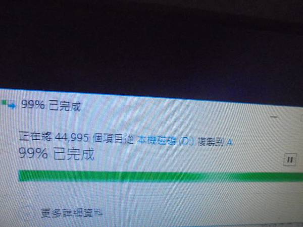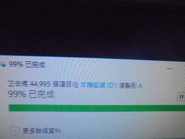 ACER宏碁SF314-51~筆記型電腦更新作業系統後→就進不去Windows 10~送原廠亦無法解決→已救回桌面的檔案資料~正在將44995個項目從本機磁碟D:複製到A→新北市汐止區-周小姐【99%已完成】