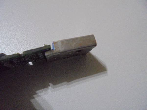 TDK東電化USB 3.0~32GB隨身碟插在桌上型電腦使用→不慎踢到後插回電腦讀取~出現USB裝置無法辨識→要修好隨身碟救出公司重要檔案資料~電路板側面看USB接頭→新北市板橋區-黃小姐【USB 3.0接頭有已折斷痕跡】