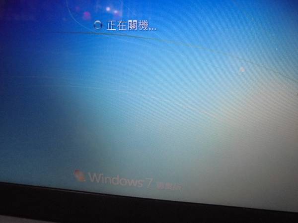 Lenovo聯想ThinkPad~T460筆記型電腦由書桌上掉落→導致液晶面板碎裂~碟盤硬碟卻沒有摔壞→已經更換PANEL繼續使用~游標滑至右下方點選關機→臺北市桂林路-陳小姐【正在關機Windows 7專業版】