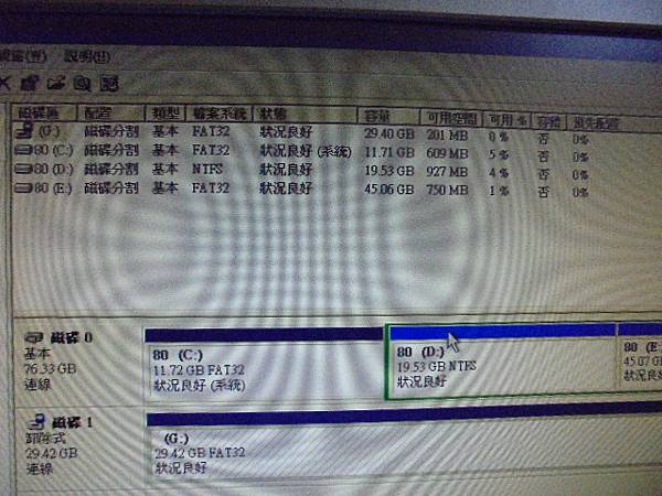 SP廣穎Ultima U03~16GB隨身碟插在電腦讀取→不慎撞到後導致USB接頭歪斜~已經完修隨身碟USB接頭→救回隨身碟裏所有檔案資料~滑鼠點選存放磁碟管理→臺北市內湖區-蔣小姐【磁碟區F磁碟區G檔案系統正確】