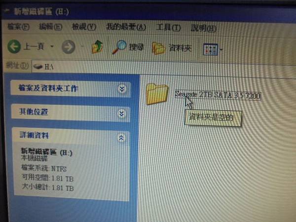 Seagate希捷3.5吋2TB→組裝桌上型電腦使用硬碟~孩子翻倒開機使用中的電腦後斷電→再開機就讀不到硬碟~要救回硬碟裏重要的網拍檔案→新增資料夾~新北市板橋區-顧先生【Seagate 2TB SATA 3.5 7200】
