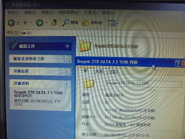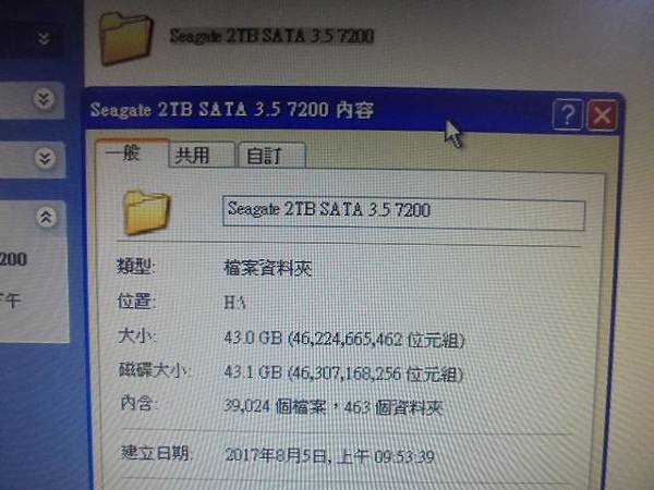 Seagate希捷3.5吋2TB~組裝桌上型電腦使用硬碟→孩子翻倒開機使用中的電腦後斷電~再開機就讀不到硬碟→光華商場報價30K救援費用~約6小時左右先救出43GB檔案→新北市板橋區-顧先生【39024個檔案463個資料夾】