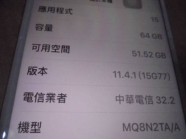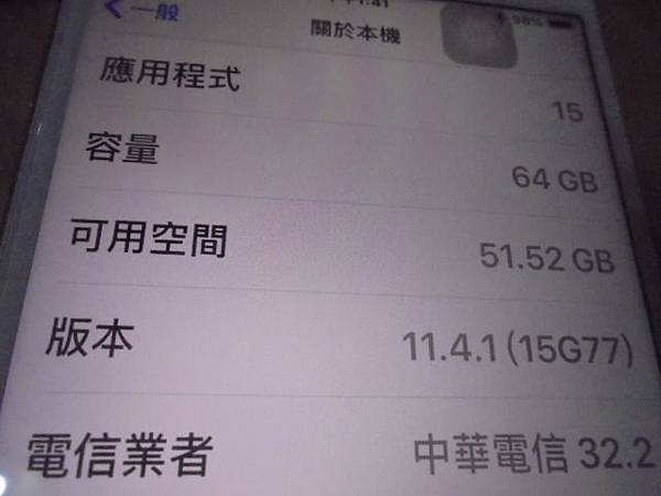 Apple蘋果iPhone 6s Plus→64GB智慧型手機被家人拿榔頭敲壞螢幕~導致手機無法觸控→經更換新螢幕總成後~已救回內建記憶體中的相片影片→點進設定一般關於本機~新北市板橋區-鄭先生【應用程式15版本11.4.1(15G77)】