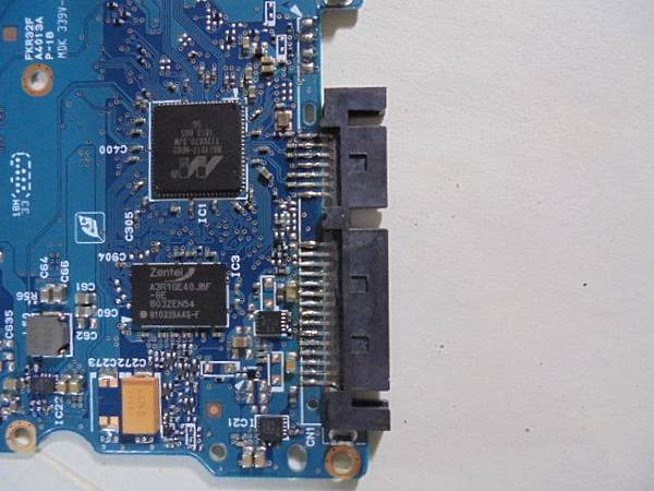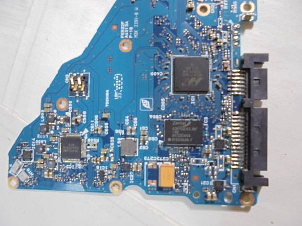 TOSHIBA東芝8TB→3.5吋企業及硬碟於組裝電腦使用~自行更換電腦零件時不慎摔到硬碟→折斷SATA接座7Pin訊號塑膠片~想修好硬碟接座繼續使用→將硬碟電路板翻至背面~新北市鶯歌區-邱先生【目視電路板焊接位置均無異常】