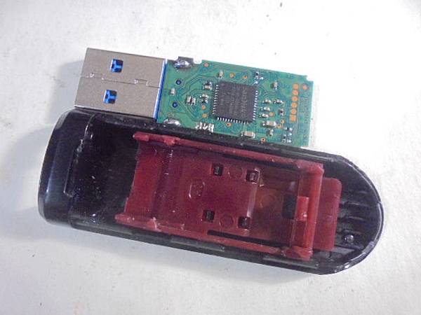 Kingston金士頓USB 3.0~128GB隨身碟插在ASUS筆電使用→隨著NB掉落地面後折斷接頭→不願意花三萬多元給SET復得處理~仍要救回工作用檔案資料→將隨身碟機構殼往後拉~臺北市大安區-賴小姐【研究該如何拆解外殼取出電路板】