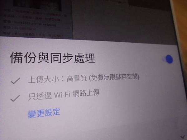 OPPO歐珀A73→32GB智慧型手機拍攝很重要的影片檔案~但不小心由手機中做了刪除→問過很多處理人員都說不可能救回~要救回內建記憶體中重要的影片→手機點進設定~新北市板橋區-王先生【備份與同步處理╱勾選只透過WiFi網路上傳】