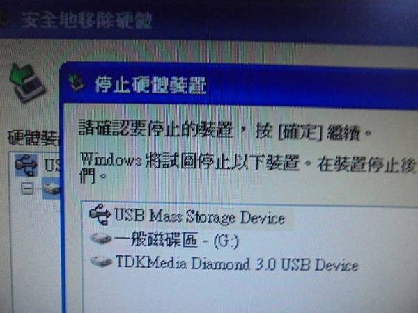 TDK東電化Diamond→32GB隨身碟插在桌上型電腦使用~不慎踢到後插回電腦讀取→出現USB裝置無法辨識~已修好隨身碟救出公司重要檔案資料→停止硬體裝置~新北市板橋區-黃小姐【現在可以放心地從系統中移除USB Mass裝置】