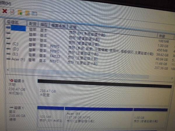 ACER宏碁SF314-51→Ultrabook更新後~就進不去作業系統→送原廠亦判定無法解決~已救回桌面與下載資料夾的檔案資料→磁碟機顯示兩個NVMe的SSD硬碟品牌型號~新北市汐止區-周小姐【均為256GB容量】 ACER宏碁SF314-51~筆記型電腦更新作業系統後→就進不去Windows 10~送原廠亦無法解決→已救回桌面的檔案資料~磁碟1基本238.46GB→新北市汐止區-周小姐【100MB良好EFI系統磁碟】