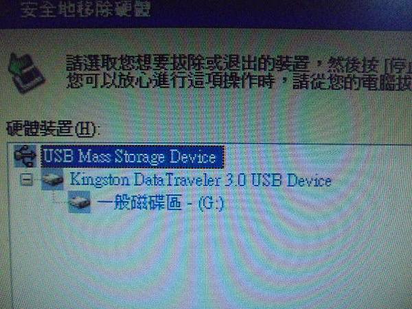 Kingston金士頓DT100G3→128GB隨身碟插在ASUS筆電隨掉落地面後~折彎USB 3.0接頭→送SET復得判定救回檔案要三萬多元~已救回工作的檔案資料→硬體裝置H USB Mass Storage Device~臺北市大安區-賴小姐【安全地移除硬體】