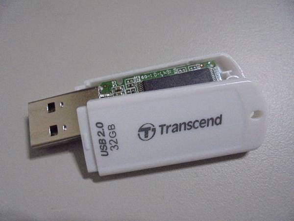 Transcend創見370→32GB隨身碟插在桌上型電腦被陌生人踢壞~撞彎USB接頭導致無法讀取→送當地店家判定印刷線路斷裂而無法維修~要救回工作上的檔案資料→將隨身碟側立後目視兩側~雲林縣斗六市-蔡小姐【看不出來電路板與USB接頭有異常】