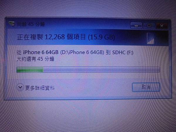 Apple蘋果iPhone 6→64GB智慧型手機不慎手滑掉進浴缸裏泡水~由浴缸取出後已經無法開機→設法修好主機板讓手機正常開機~已救回超過一萬個相片影片檔案→從iPhone 6 64GB到SDHC F:~新北市板橋區-吳小姐【大約還45分鐘】