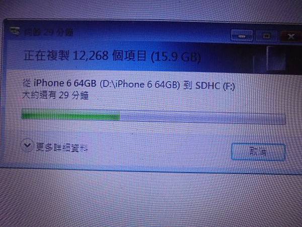 Apple蘋果iPhone 6→64GB智慧型手機不慎手滑掉進浴缸裏泡水~由浴缸取出後已經無法開機→設法修好主機板讓手機正常開機~已救回超過一萬個相片影片檔案→從iPhone 6 64GB到SDHC F:~新北市板橋區-吳小姐【大約還45分鐘】