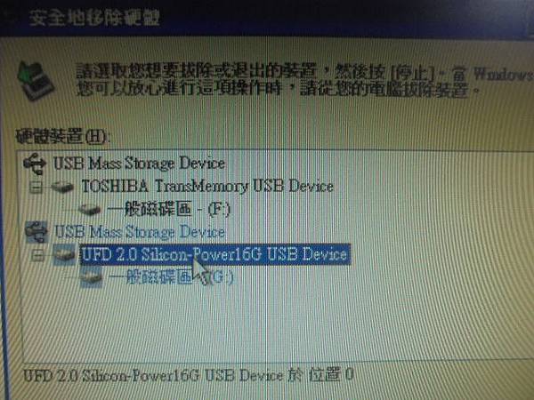 SP廣穎Ultima U03→16GB隨身碟插在電腦讀取~不慎撞到後導致USB接頭歪斜→再插上電腦已讀取不到裝置~要救回隨身碟裏的檔案資料→停止硬體裝置~臺北市內湖區-蔣小姐【現在可以放心地從系統中移除Mass Storage裝置】