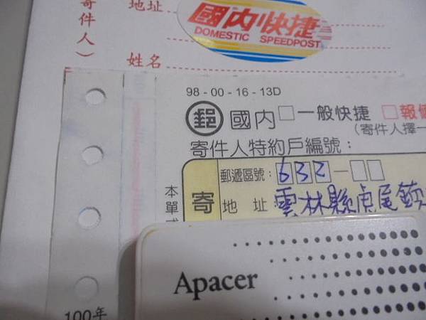 Apacer宇瞻8GB~AH323隨身碟檔案皆是正常讀取使用→送至店家做圖像輸出時~懷疑隨身碟是感染了病毒→但是不知道該找誰救援~要救回工作上的檔案資料→右下角郵戳為虎尾科技大學郵局~雲林縣虎尾鎮-陳小姐【拆開包裹取出Apacer隨身碟】