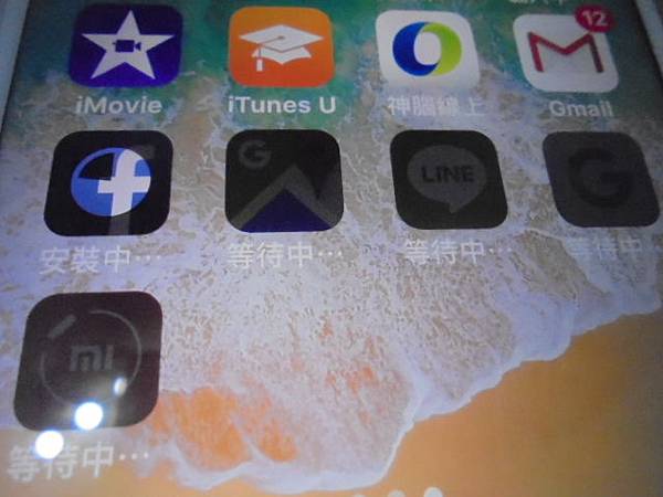 Apple蘋果iPhone 6s Plus→64GB智慧型手機被家人拿榔頭敲壞螢幕~導致手機無法觸控→經更換新螢幕總成後~已救回內建記憶體中的相片影片→2個App顯示安裝中與載入中~新北市板橋區-鄭先生【尚有4個App顯示等待中】