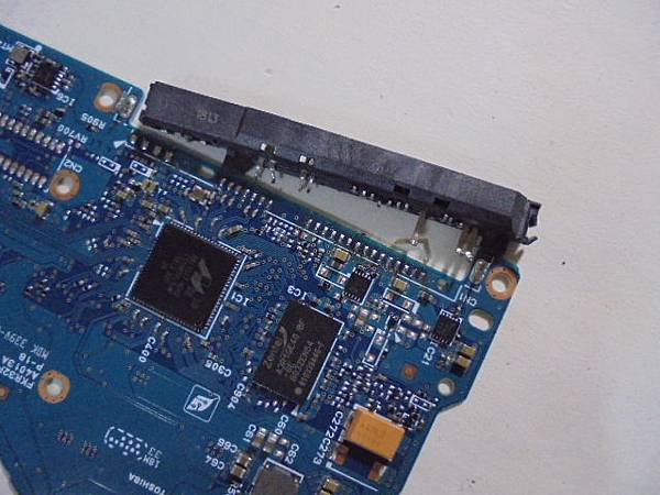 TOSHIBA東芝8TB→3.5吋企業及硬碟於組裝電腦使用~自行更換電腦零件時不慎摔到硬碟→折斷SATA接座7Pin訊號塑膠片~想修好硬碟接座繼續使用→已拆下代用SATA接座與硬碟電路板做比對~新北市鶯歌區-邱先生【22隻針腳均沒有異常】