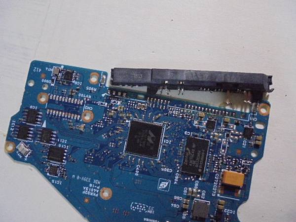 TOSHIBA東芝8TB~3.5吋企業及硬碟於組裝電腦使用→自行更換電腦零件時不慎摔到硬碟~折斷7Pin訊號接座塑膠片→想修好硬碟SATA接座繼續使用~拆下東芝8TB硬碟電路板→新北市鶯歌區-邱先生【再解焊剛剛更換好的代用SATA接座】