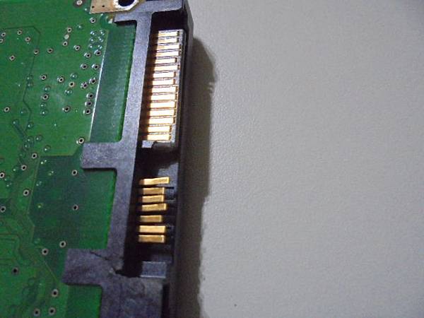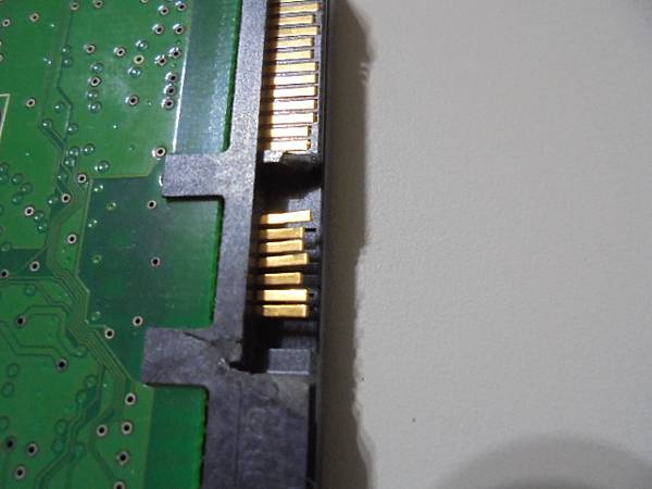 Seagate希捷1TB~3.5吋硬碟接於組裝電腦→SATA接座的訊號7Pin塑膠片~於拆拔中不慎折斷而無法讀取→要救回硬碟裏重要的檔案資料~因為折斷硬碟SATA接座7Pin訊號端塑膠片→臺北市長春路-孫先生【折彎而斷落的1隻針腳】