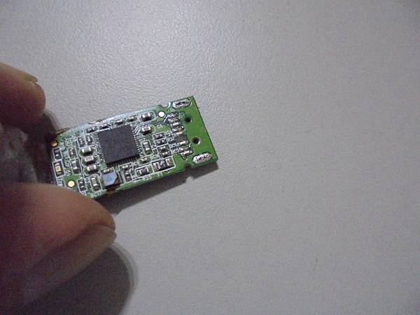 【現場完修】Transcend創見820→64GB隨身碟USB 3.0插在MacBook電腦使用時~被家中貓咪由桌上撞落地面→導致USB接頭折斷掉落已無法使用~要救回工作上的美工圖檔→翻回隨身碟電路板正面~臺北市士林區-張小姐【明顯看到斷了1隻印刷線路PAD】