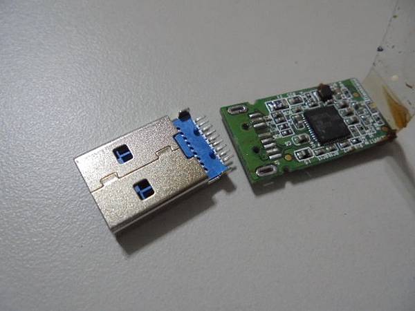 【現場完修】Transcend創見820~USB 3.0隨身碟64GB插在MacBook電腦使用時→被家裏Cat由桌上撞落地面~導致USB接頭折斷掉落已無法使用→要救回工作上的美工圖檔資料~將隨身碟電路板翻至背面→臺北市士林區-張小姐【DIP固定焊點暫時不焊接】